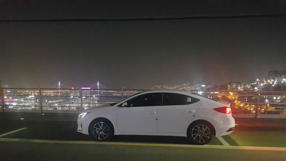 부산항대교를 바라보며 멋진 2019 아반떼의 모습을 바라보았습니다.