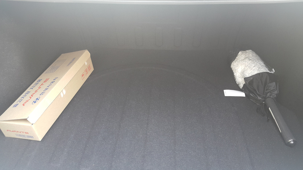 트렁크를 열어보면 먼지털이개와 차량용 위험표시 삼각대가 들어있습니다.