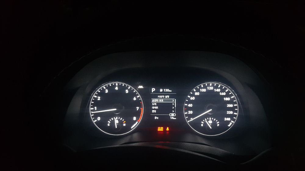 헤드라이트를 켜니 LED특유의 하얀색빛이 나옵니다.