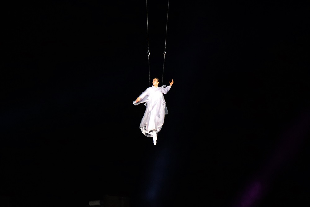 이 무대 퍼포먼스는 아랑이 순결을 지키기 위하여 죽음을 택하고 후에 나비가 되어 하늘에 오르는것을