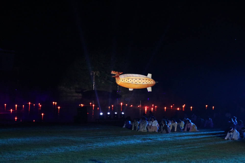 저 수상 무대에서 오늘의 공연 밀양강 오딧세이가 그 멋진 수상 무대를 펼쳐나갈 것입니다.
