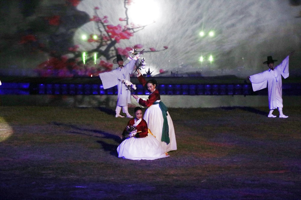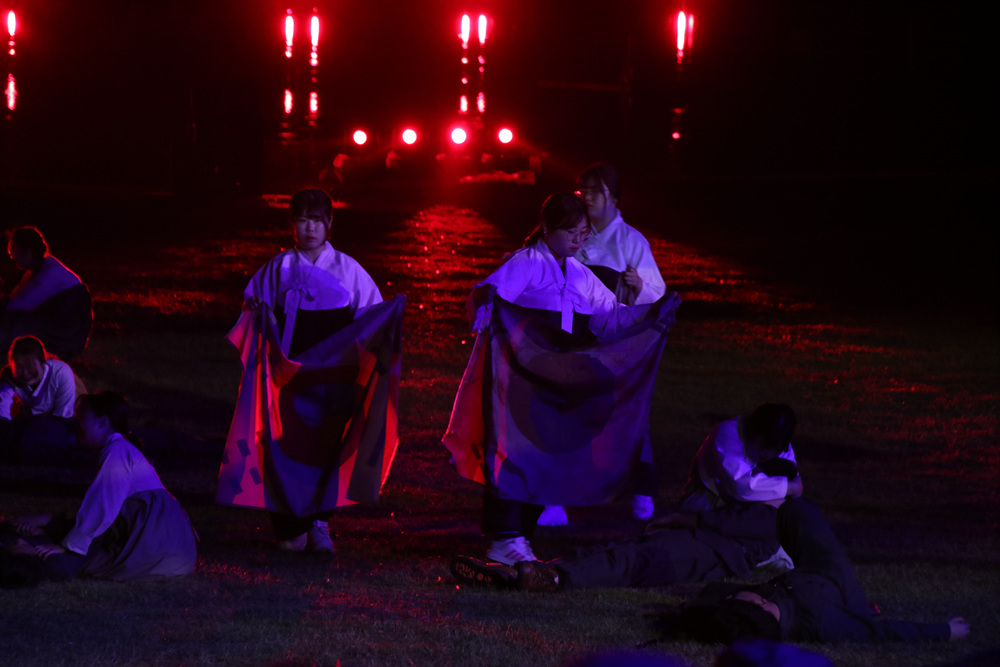 대경대학교의 액션뮤지컬 밀양아리랑 주제공연이 펼쳐지고 있는 무대입니다.