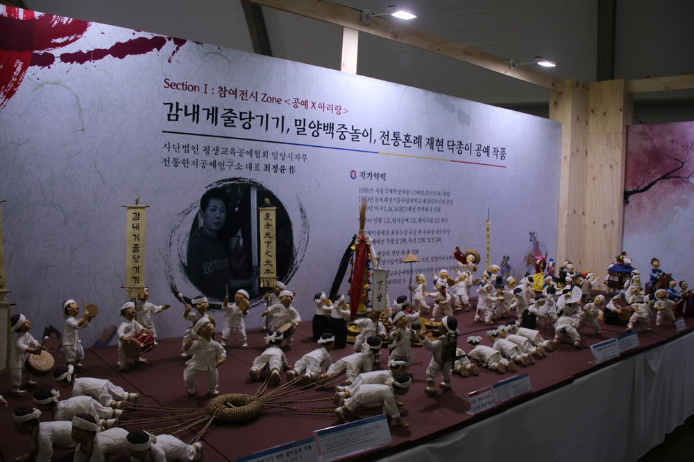 감내게줄당기기, 밀양백중놀이, 전통혼례 재현 닥종이 공예작품이 아주 리얼하게 제작되어 전시되어 있습니다.