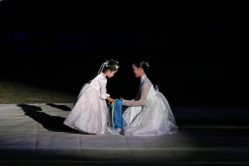 이 무대 퍼포먼스는 아랑이 순결을 지키기 위하여 죽음을 택하고 후에 나비가 되어 하늘에 오르는것을