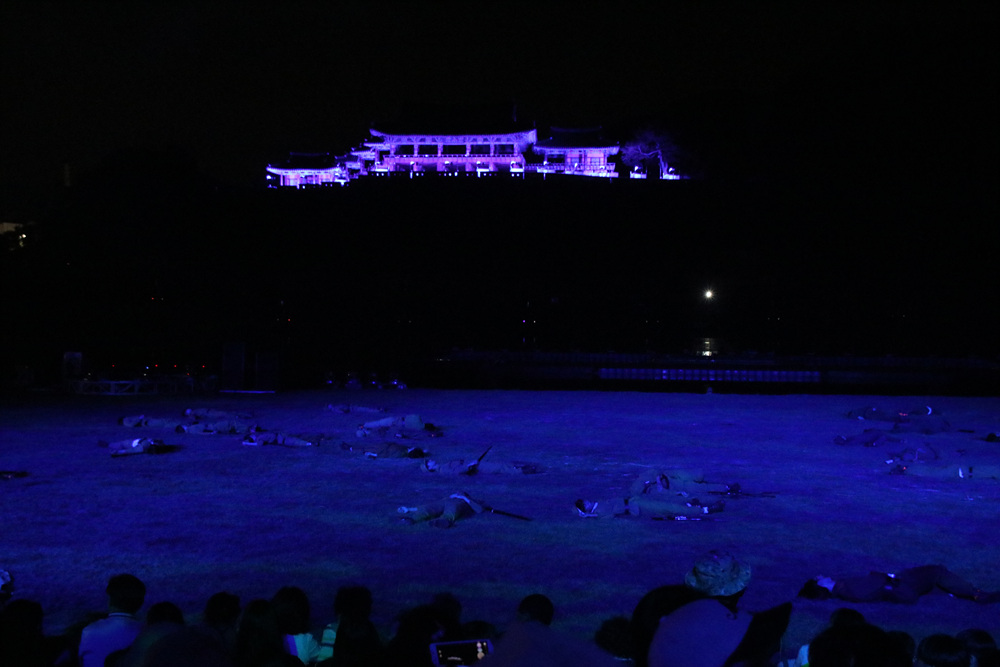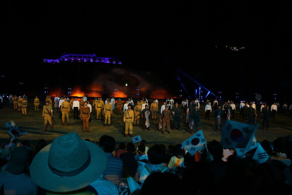대경대학교의 액션뮤지컬 밀양아리랑 주제공연이 펼쳐지고 있는 무대입니다.