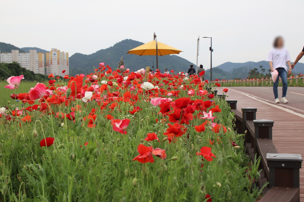 장성 황룔강변을 가득 수놓은 꽃양귀비