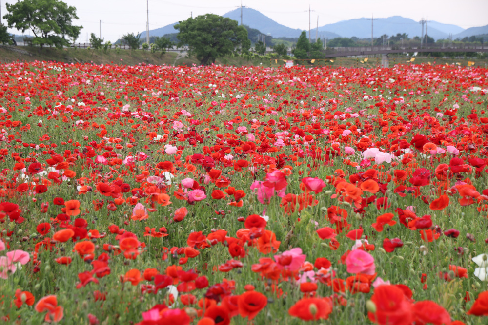 장성 황룡강변을 붉게 수놓고 있는 꽃양귀비들의 물결에