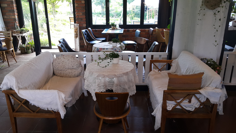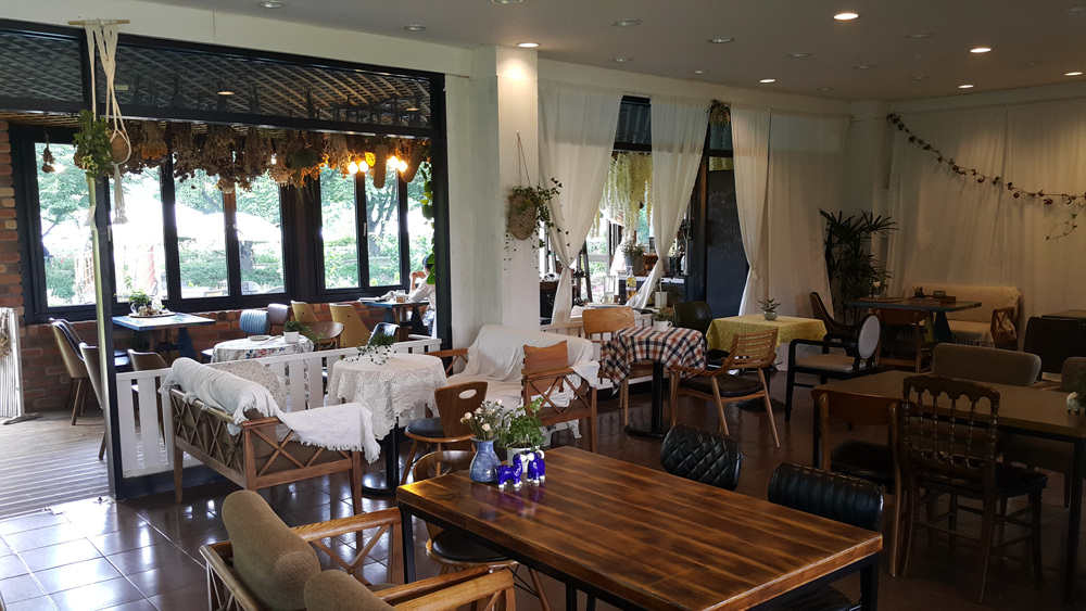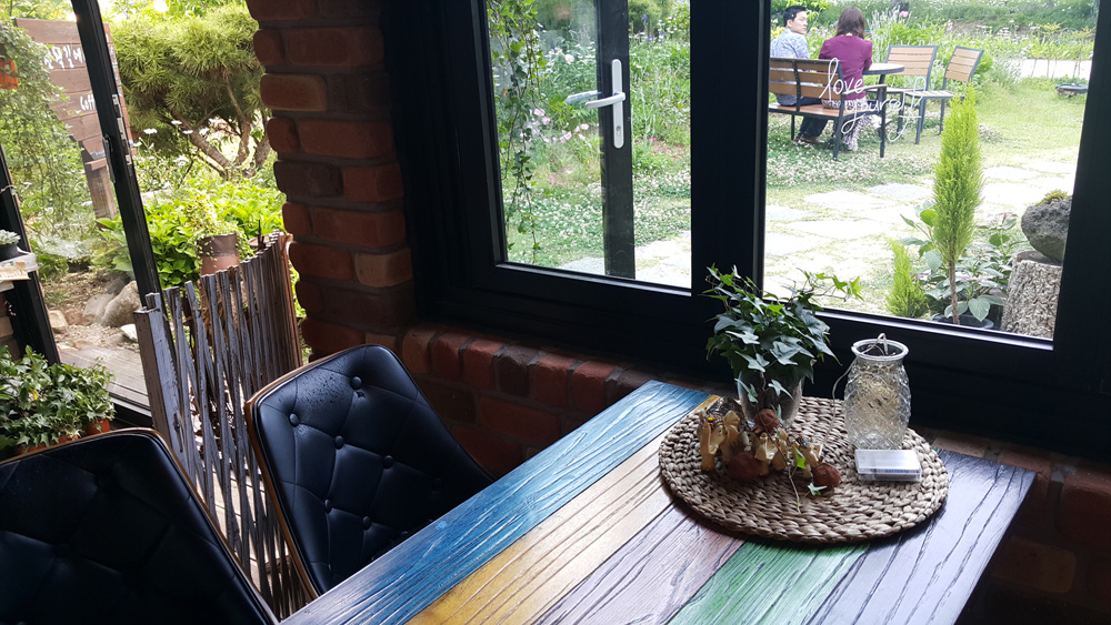 카페안을 온통 정원의 연장선으로 만들어 놓았어요