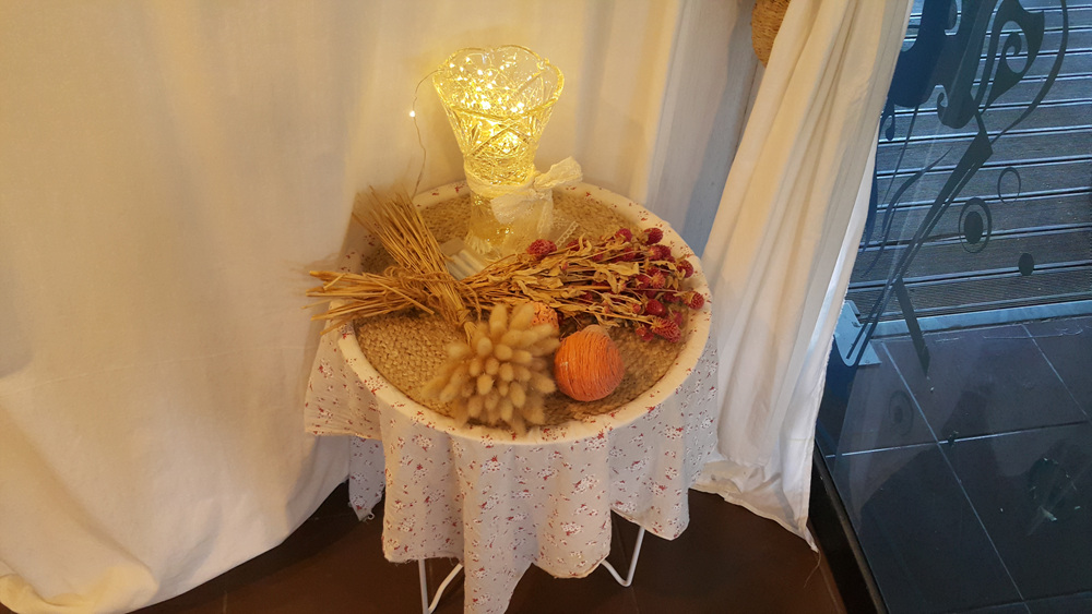 천정에 달려있는 드라이플라워와 백열전구는 은근히 조화를 이루고 있습니다.