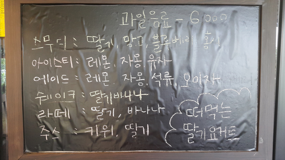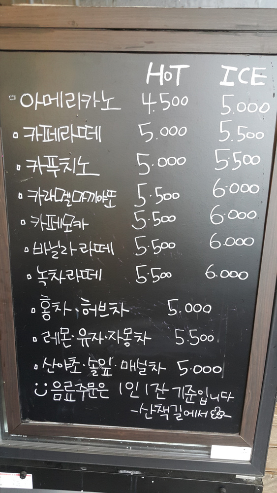 메뉴판은 흑백보드에 하얀글씨로 쓰여져 있어 기계화된 자른 메뉴판보다 더욱 더 정감이 갑니다.