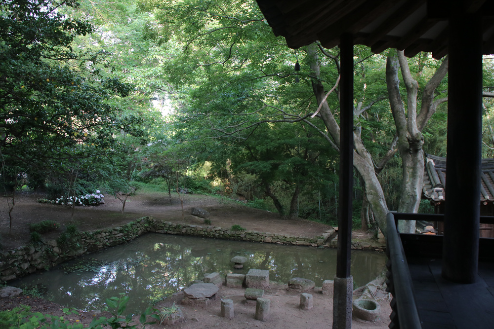 득량바다와 오봉산의 조망을 위해 연못주변에 담을 쌓지 않고 누마루의 기둥을 높게 올렸다고 합니다.