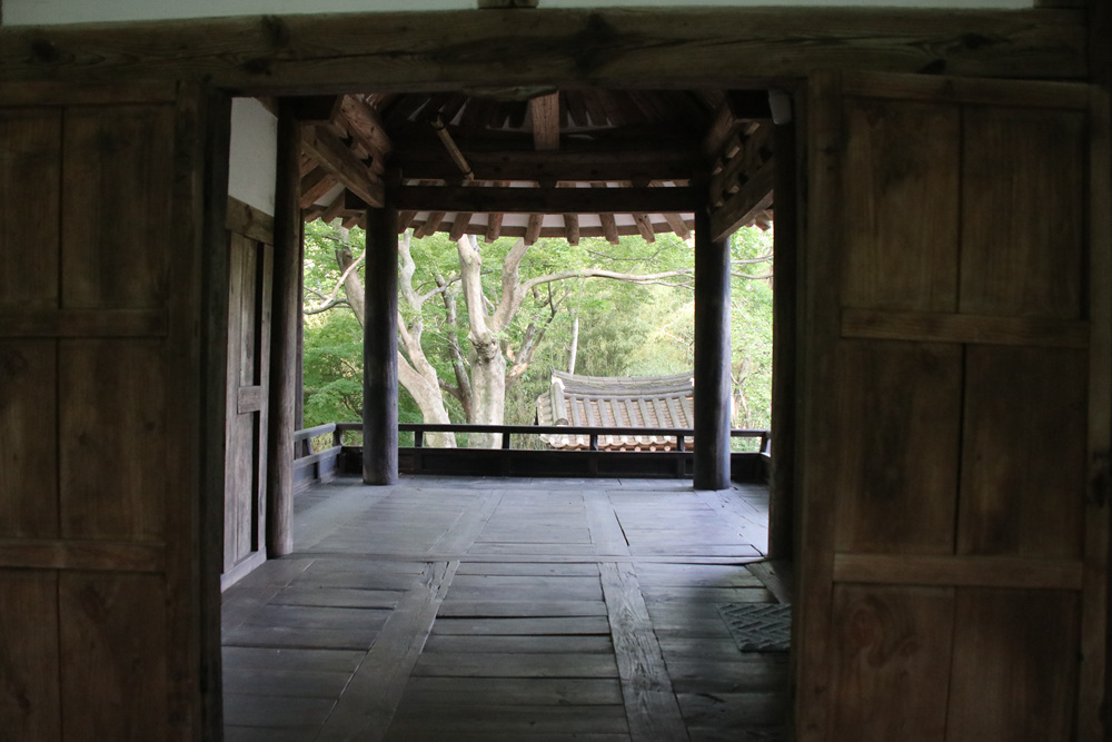 마루에서 누각으로 가는 길을 바라보았습니다.