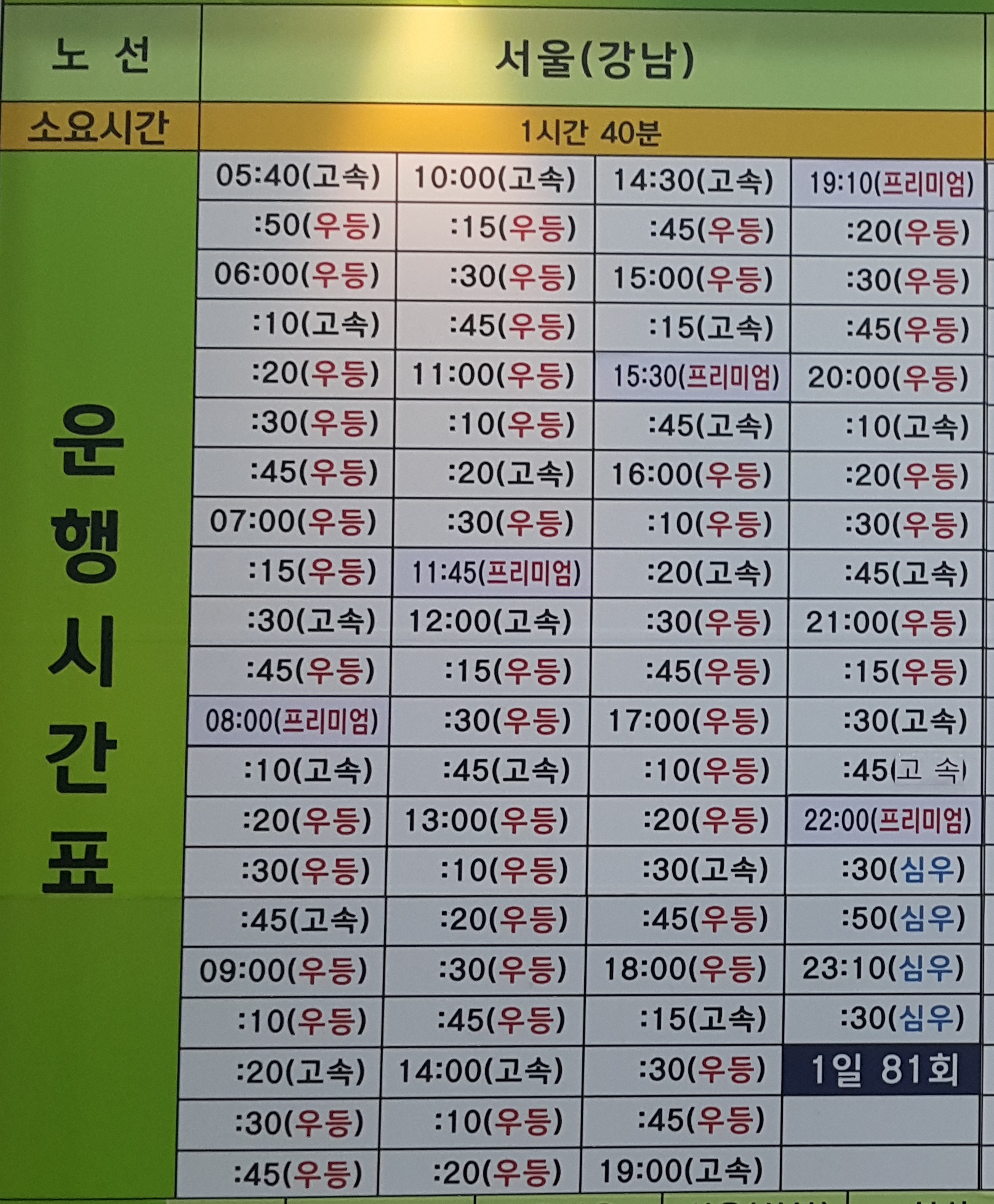 청주 출발 부산을 ㅗ가는 프리미엄 버스 승차하여 보았습니다.