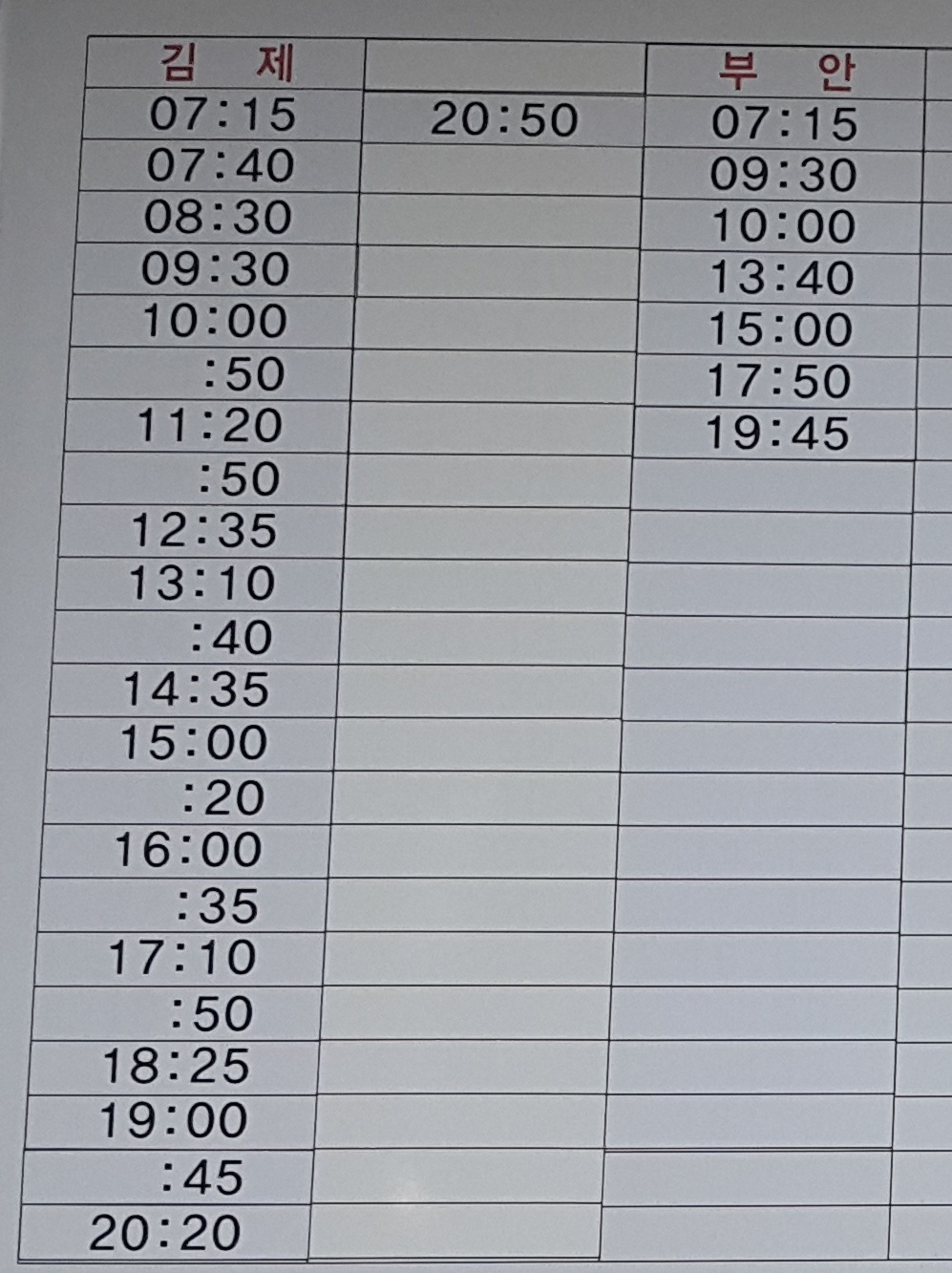 익산시외버스터미널 시간표 요금표