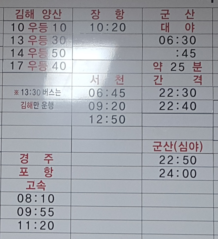 익산시외버스터미널 시간표