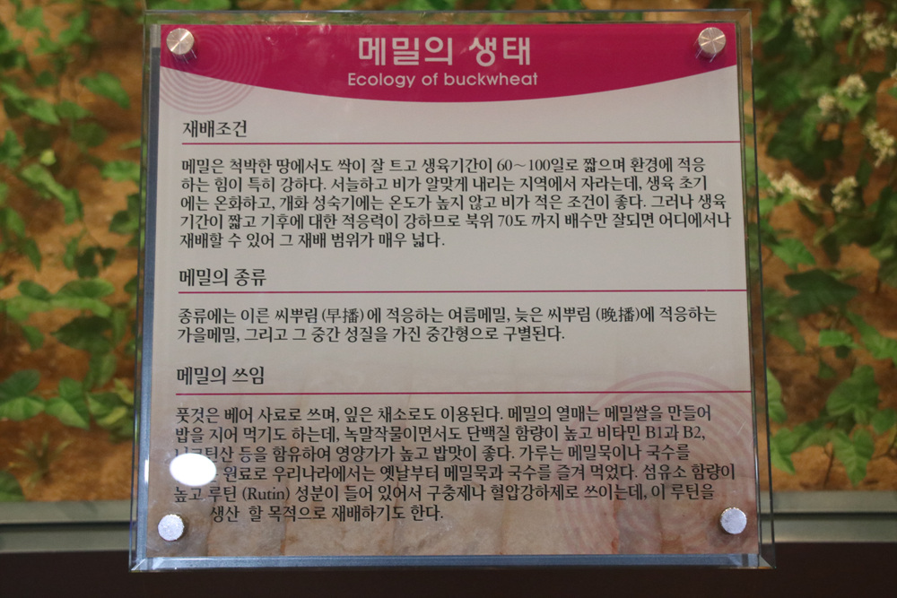 메밀의 생태에 관하여 전시하여 놓았습니다.
