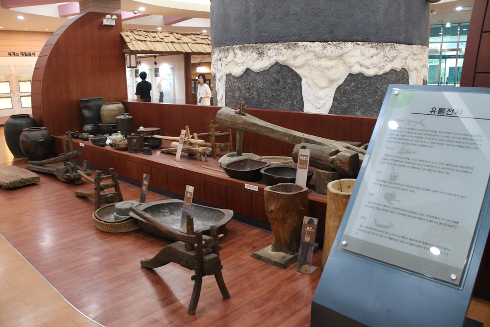 박물관 중앙을 차지하고 있는 대형 맷돌이 시선을 끕니다.