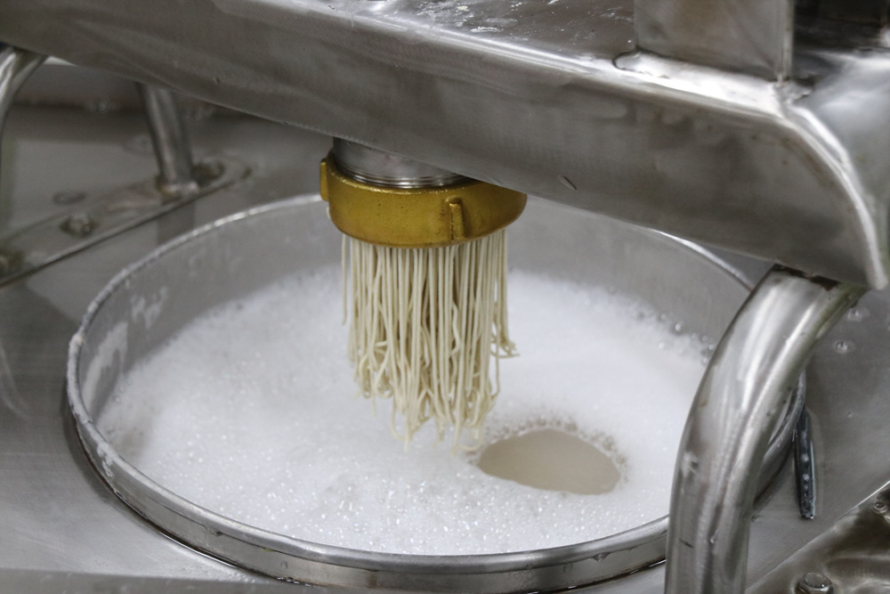 나오는 즉시 물에 들어가서 서로 엉키지 않게 되고 면은 완성됩니다.