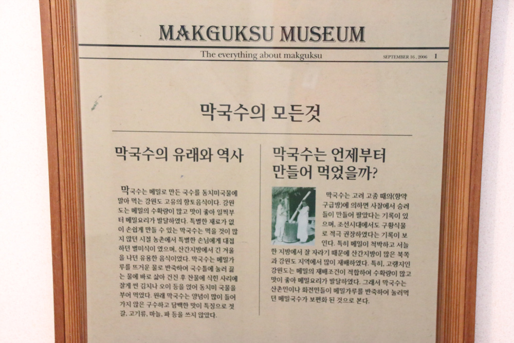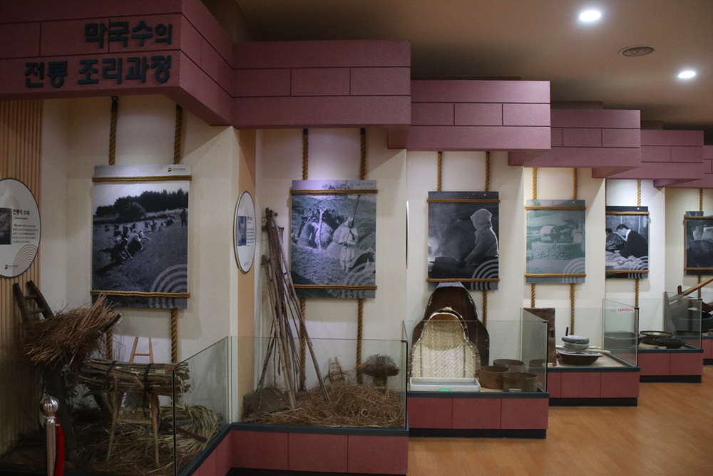 이곳에서는 막국수의 전통 조리과정을 순서대로 사진과 실물을 함께 전시하여 놓았습니다.