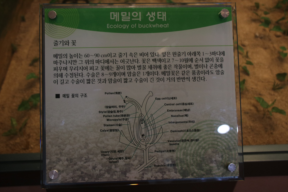메밀의 생태에 관하여 전시하여 놓았습니다.