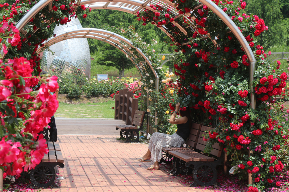 장미공원 곳곳에는 이렇게 쉴만한 벤치와 그늘막이 설치되어 있어 장미공원을 산책하다