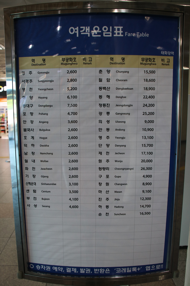 태화강역 출발 동대구, 포항, 정동진, 청량리 방면.