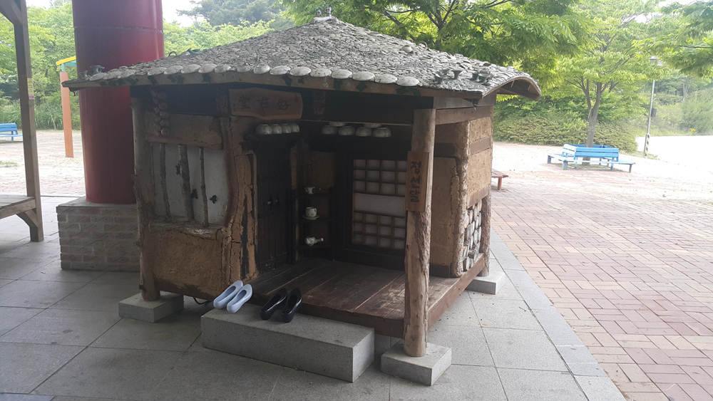 테마공원에는 이런 벤치가 즐비하고 작은 닭장이 있어 닭의 울음소리를 들을수가 있습니다.