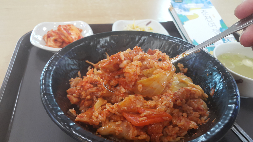 반찬으로 김치가 나왔으며,