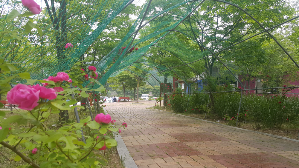 장미터널이 조성되어 있어 이 터널을 걷다보면 장미향에 코끝이 진하여 옴을 느낄수 있습니다.