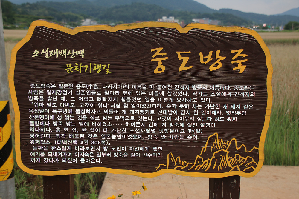 이 길은 소설 태백산맬 문학기행 길이며 중도방죽이라 불립니다.