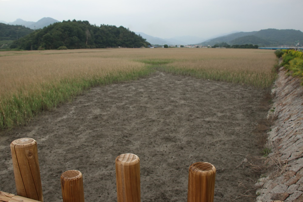 주차장에서 방죽으로 넘어오는 가리는 목재로 만들어져 생태를 중요시하였음을 보여주고 있습니다.