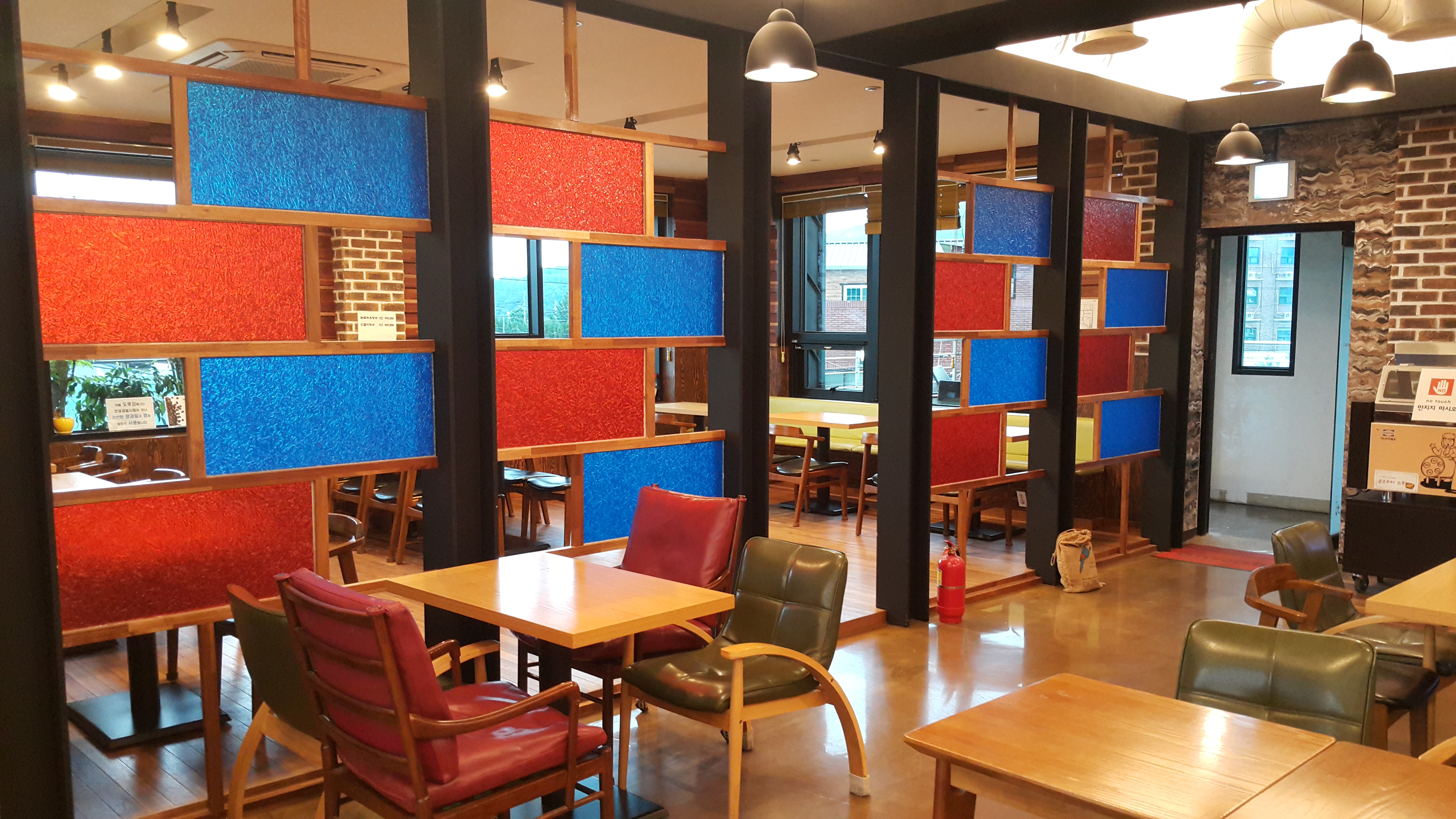 실내 칸막이 역할도 하고 있는 이 공간은 마치 스테인드글라스의 효과를 나타내고 있습니다.