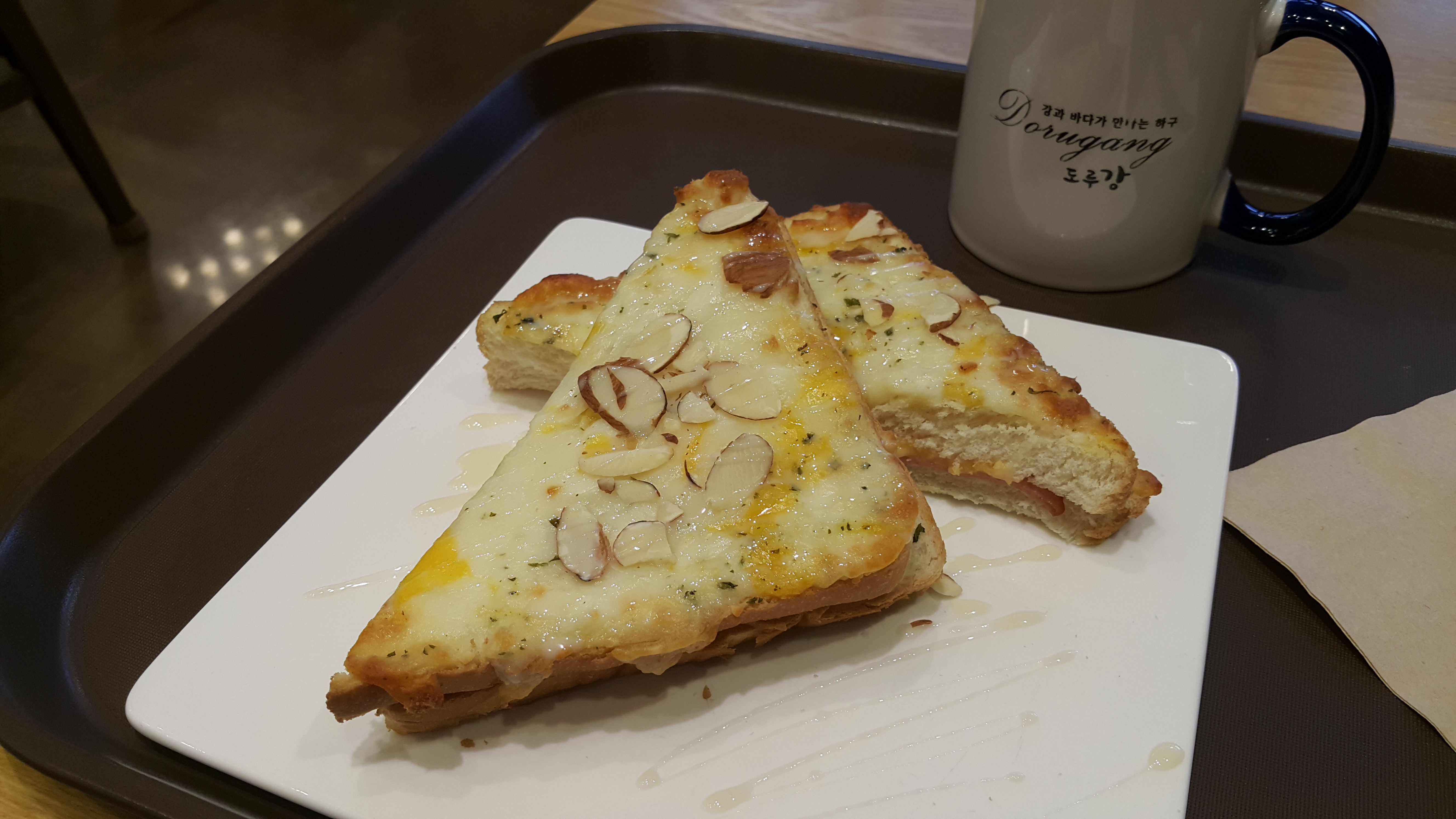 드디어 주문한 커피와 크로크뮤수가 나왔습니다.