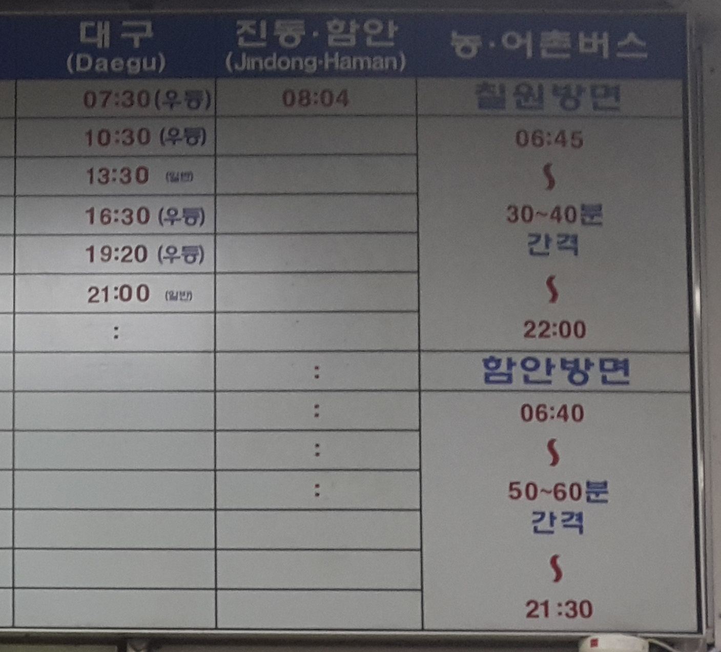 남마산 출발 대구, 진동, 함안 방면. 농어촌버스 칠원, 함안 방면.