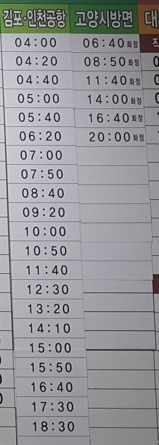 춘천 출발 김표, 인천공항, 고양시 방면.