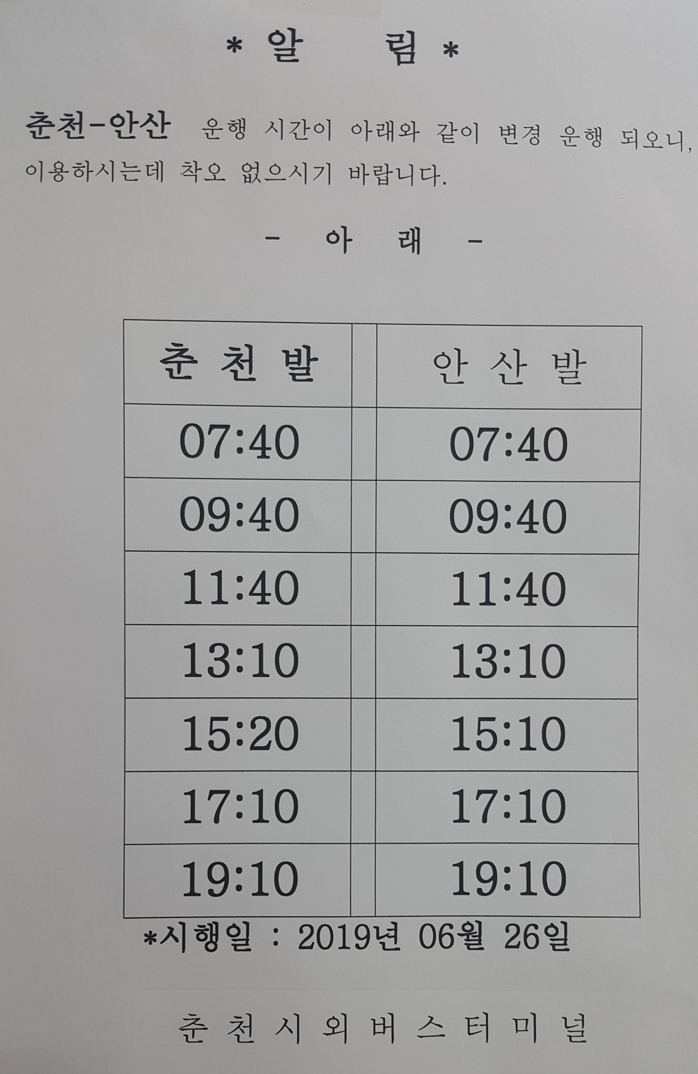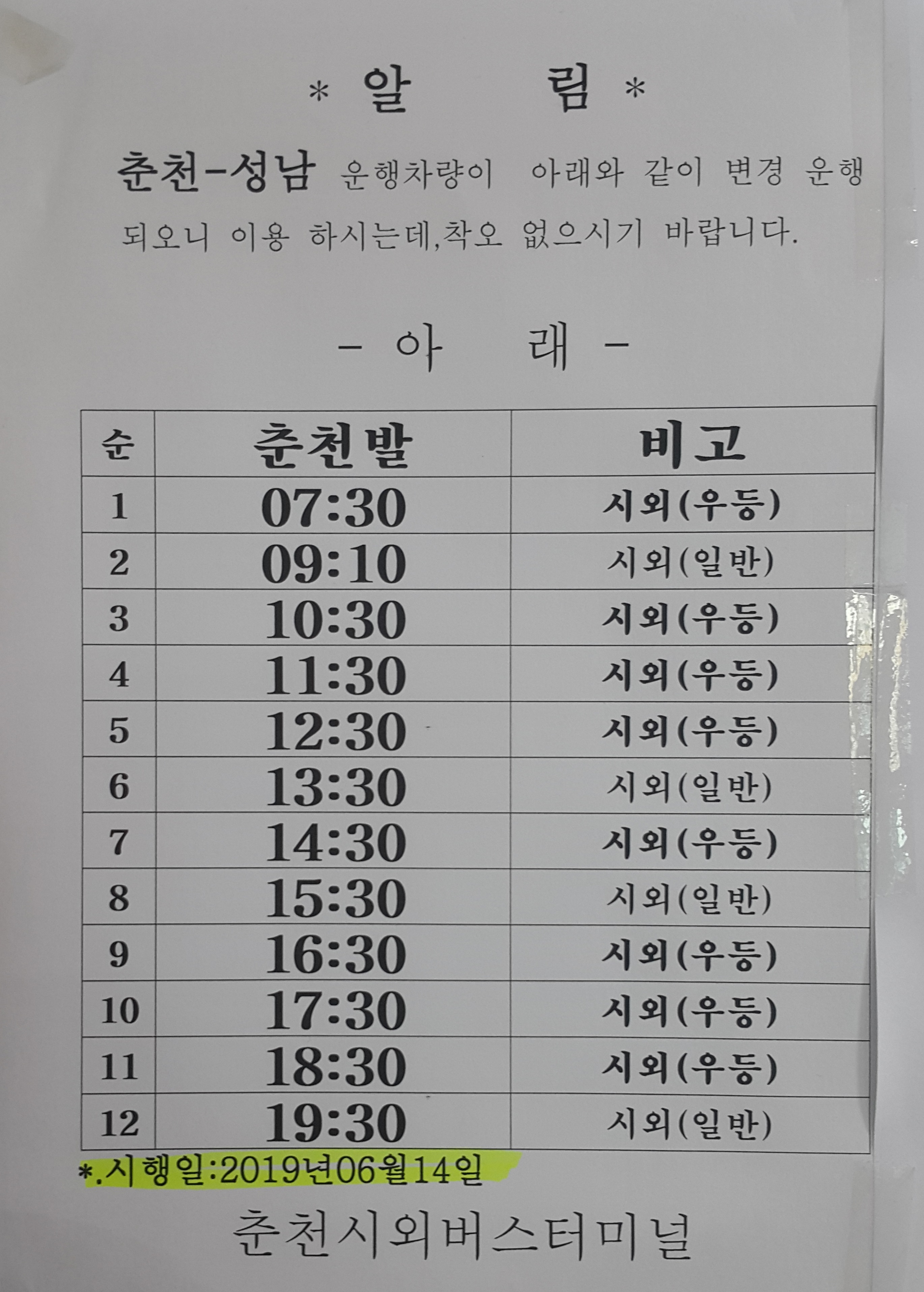 춘천 성남 시간표.