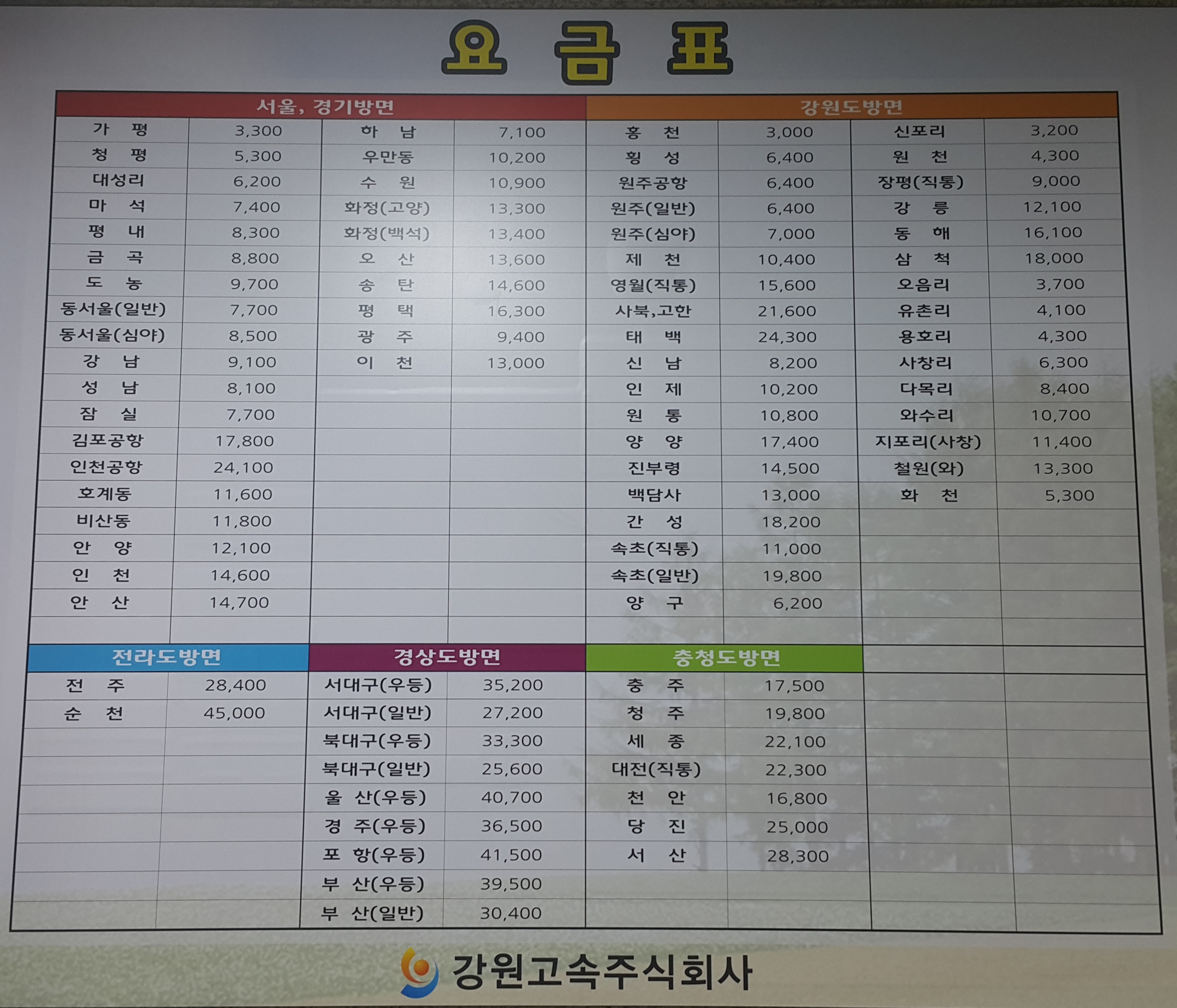 춘천 출발 성남, 수원, 의정부, 이천, 강남 방면.