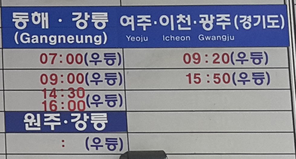 동해, 강릉, 원주, 여주. 이천, 광주(경기도) 방면.