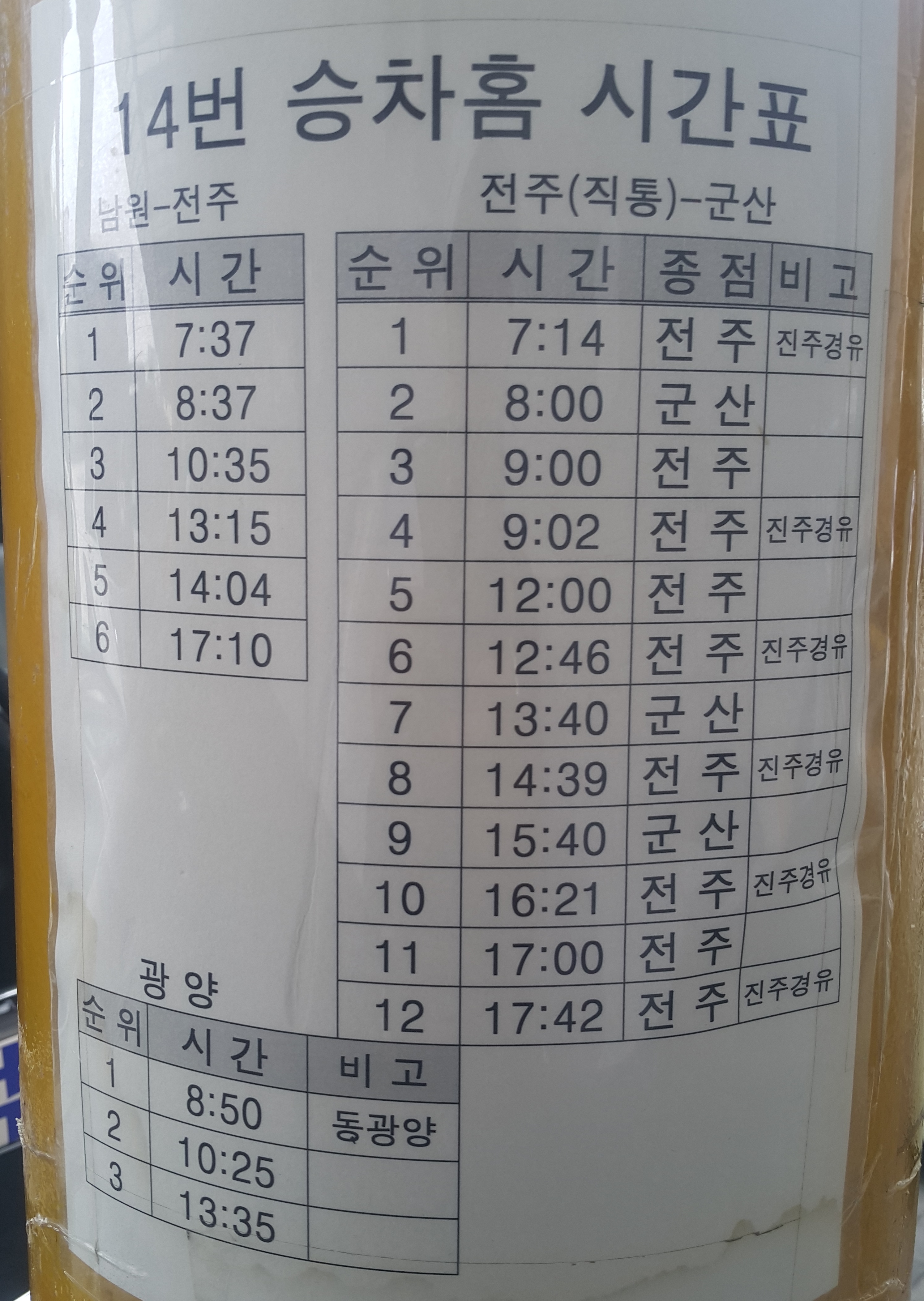 남원, 전주, 전주(직총), 군산, 광양, 동광양.