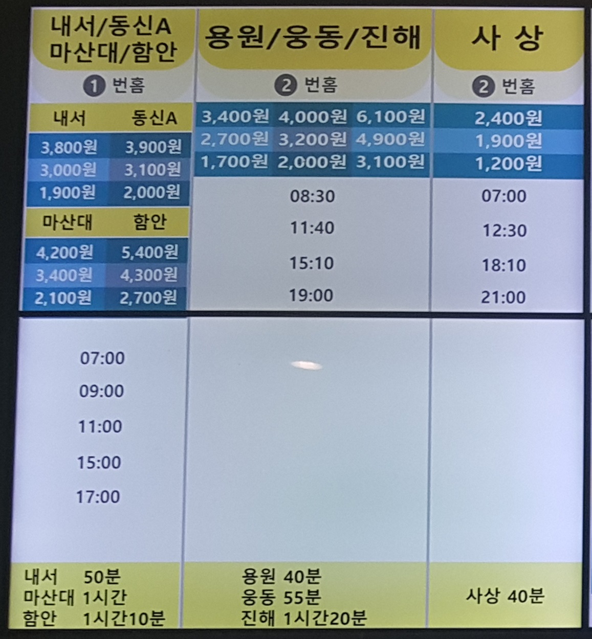 내서, 동신A, 마산대, 함안, 용원, 웅동, 진해, 사상 방면.