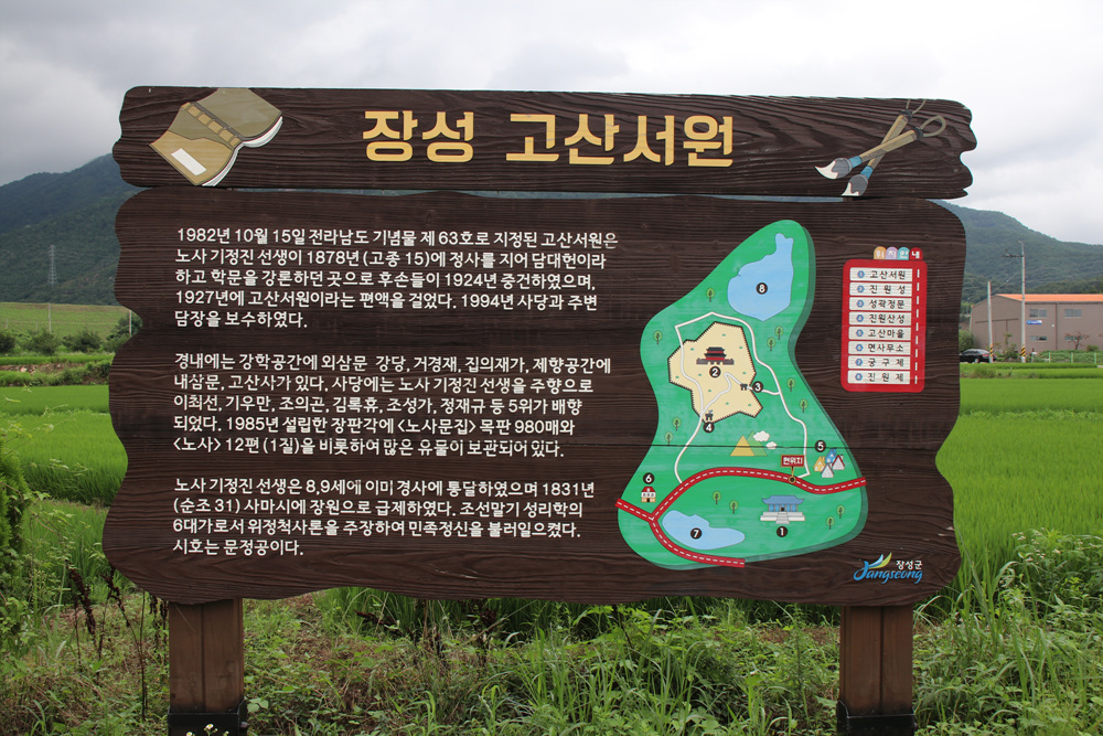 장성 고산서원 안내판이 반갑게 방문객을 맞이하는데요