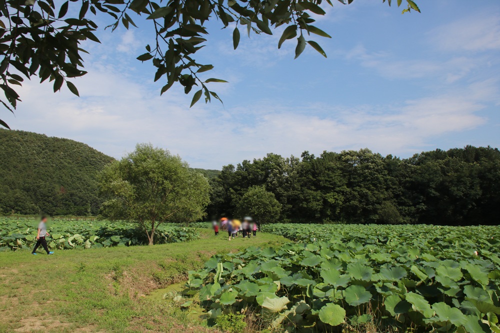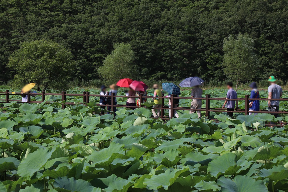 상수원 보호구역에 있는 습지다 보니 고심 끝에 연꽃이 가장 예쁘게 피는 7월 중순부터 8월 중순까지,