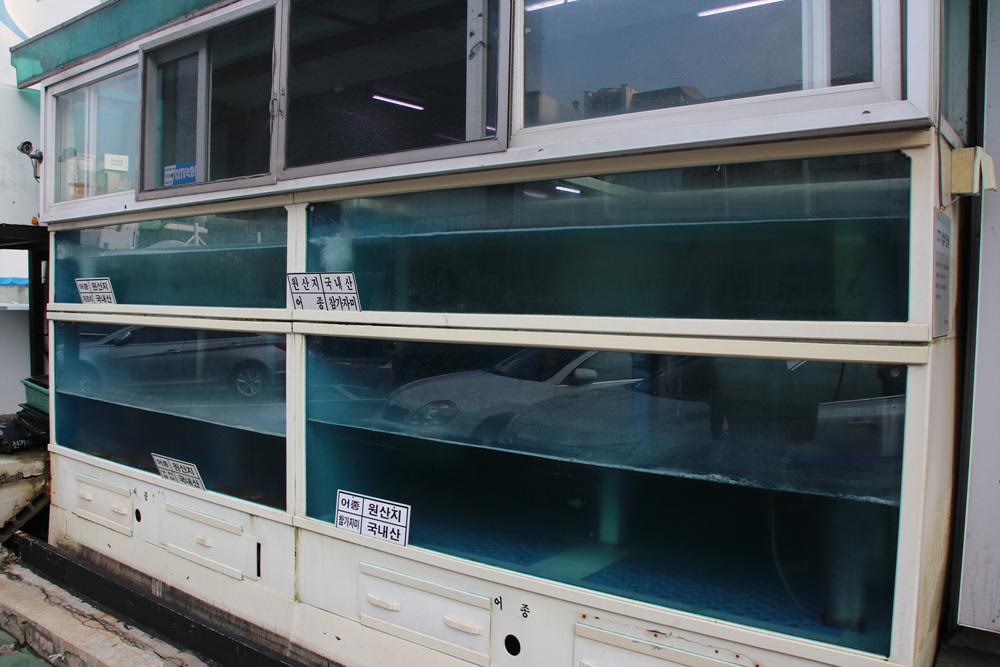 점심시간인데 수족관에는 벌써 오늘 팔 물량이 소진되고 없다