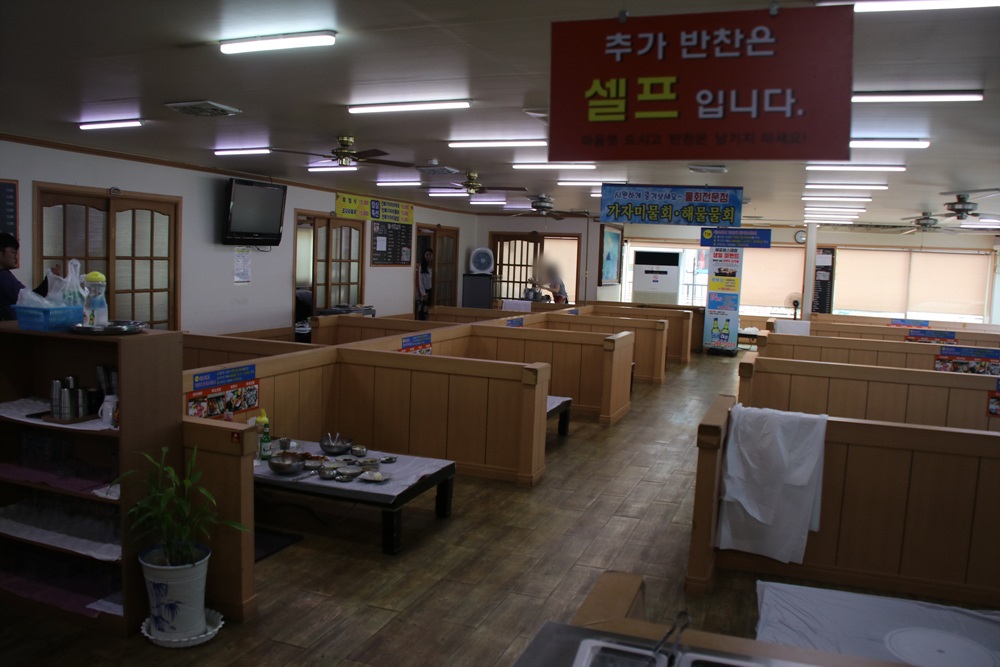 입구에 셀프 반찬 대가 있어 추가 반찬은 자신이 원하는 대로 가져갈 수 있다.