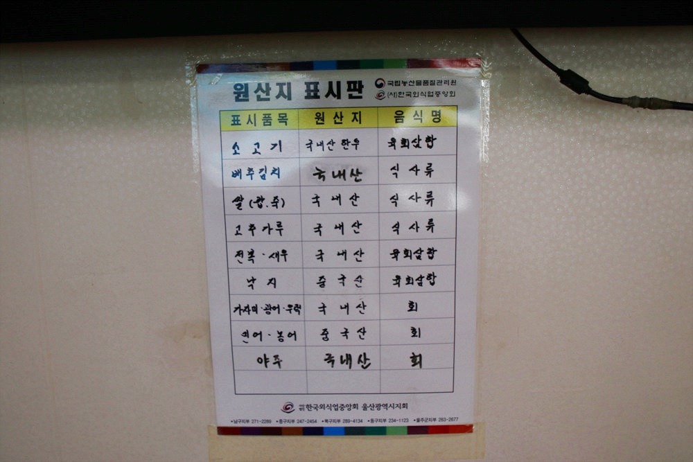 원산지 표시판을 보면 낙지를 제외하고 모두 국내산임을 표시하고 있다.
