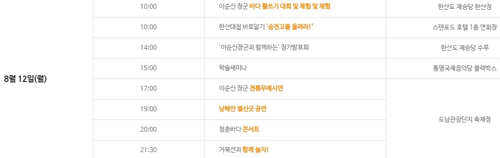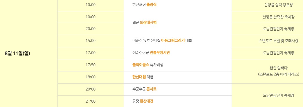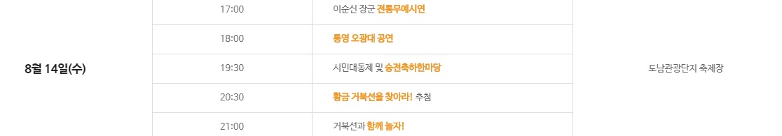 장 소 : 도남 관광단지, 한산 앞바다 등 통영시 일원