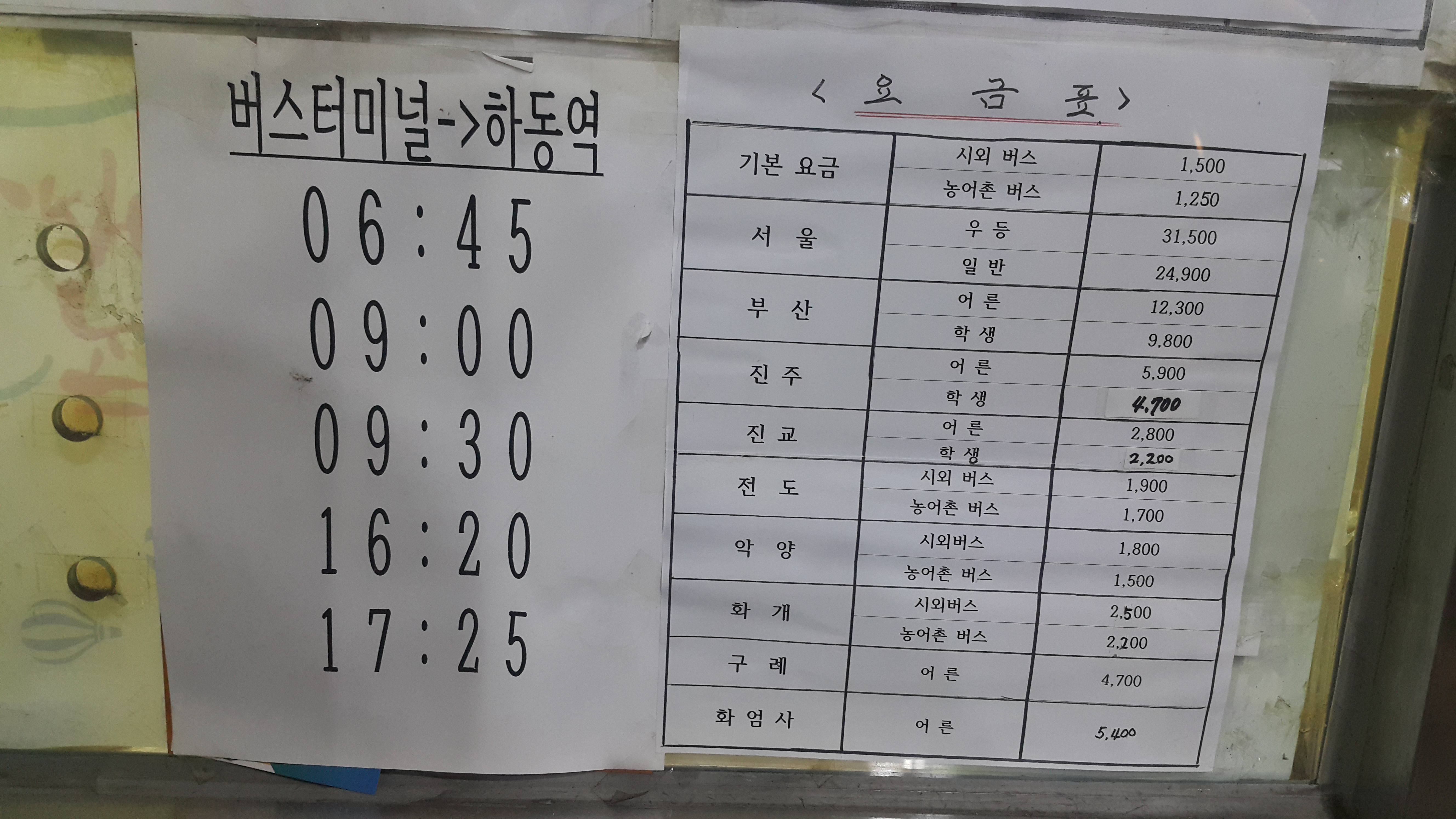 하동 출발 망덕, 중마동(54번 시내) 방면.
