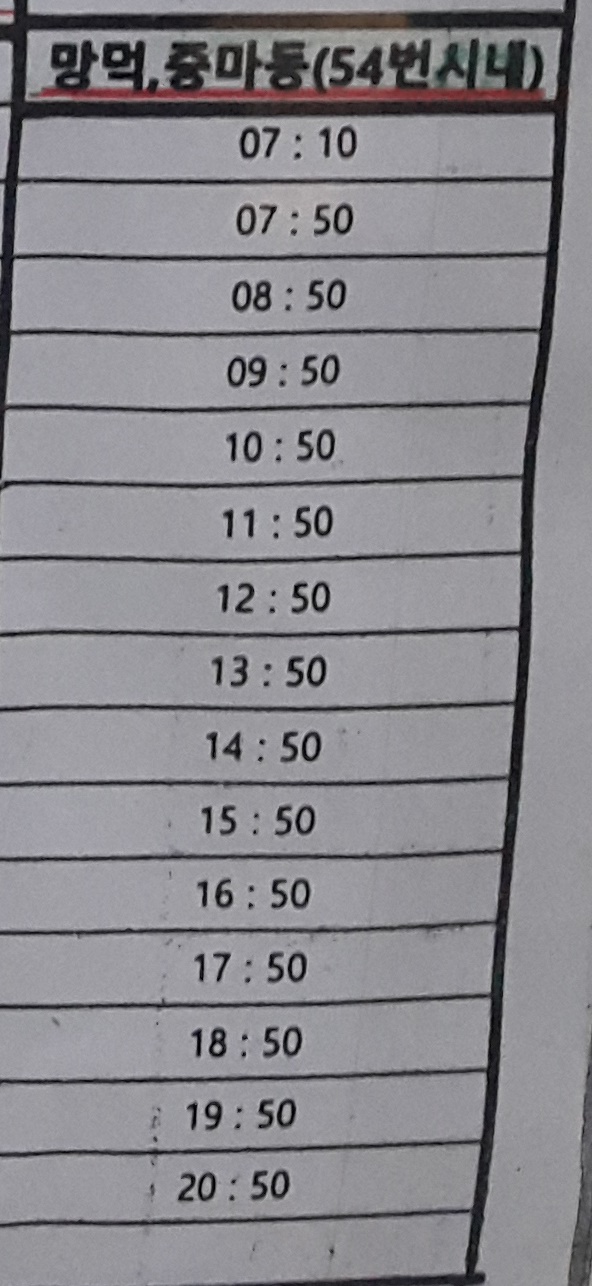 하동 출발 망덕, 중마동(54번 시내) 방면.