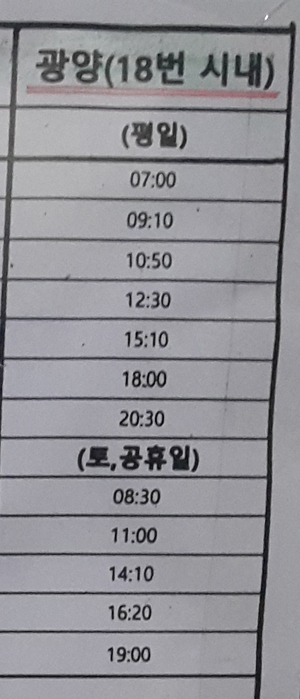 하동 출발 광양(18번 시내) 방면.