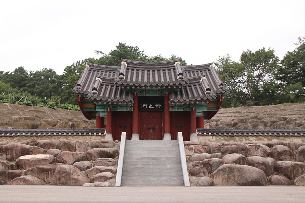 아주 멋진 누각이 모충사의 전면에 자리잡고 있어 보기에 좋습니다.